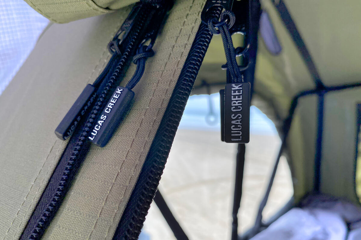 - Quiet – Totally unique to Lucas Creek is our Anti-flap rain-fly system. No more sleepless nights in windy conditions.