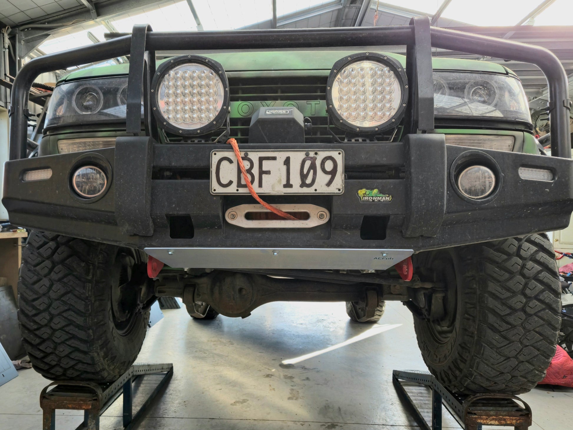 Direct replacement of the weak Ironman front guard under the bullbar.