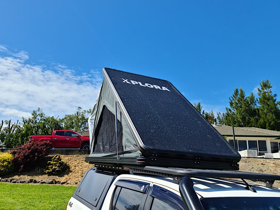 Real canvas! This is a change on the roof top tent market with our thick 400g Polyester-Cotton used as the main frame of the tent. This fabric far exceeds what it needs to be to keep New Zealand's harsh weather out.